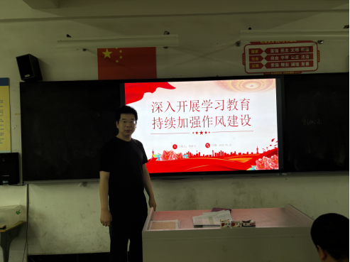 在本次主题党日活动最后,周俏飞同志上了一堂以《深入开展学习教育、持续加强作风建设》为主题的微党课,全体党员进行了交流讨论。