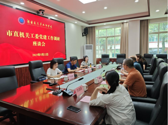 5月22日上午,邵阳市直机关工委副书记金永辉一行到我校调研党建工作情况。座谈会由我院党委书记曾红彪主持,党委副书记刘炀烨、组织人事科副科长何曾艳、肖清清参加会议。