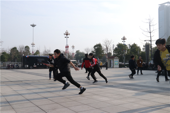 参观完博物馆后,大家一起来到市文化艺术中心爱莲广场,进行素质拓展。分别进行三人六足游戏和四人迎面接力赛,引来不少围观群众,活动全程轻松愉快,同学们参与度高,并对表现优异的小组颁发了纪念品。