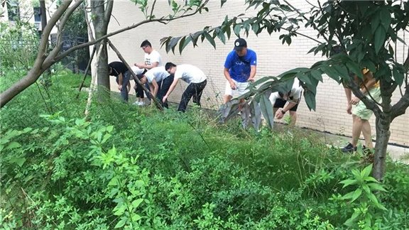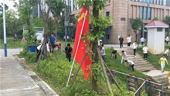 2019年6月17日下午,长沙校区组织全体党员、入党积极分子和全校学生一起,对长沙校区内所有草坪的杂草进行了大清理,深度美化了校园环境。