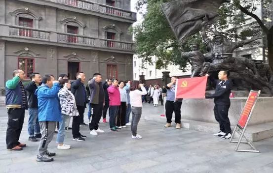最后,纪念馆前雕塑旁,在青工委员蔡韵同志的带领下,17名党员在鲜红的党旗前庄严宣誓:“我志愿加入中国共产党,拥护党的纲领……永不叛党”,重温入党誓词,铭记对党忠诚、积极工作的铮铮誓言,表达矢志不渝守初心、奋发有为担使命的决心。