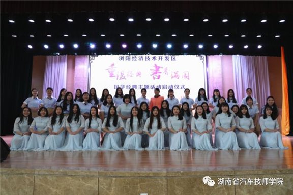 3月22日上午,春光和煦。长沙校区30多名学生代表参加了浏阳经开区举办的“重温经典,书香满园”国学经典主题活动启动仪式。