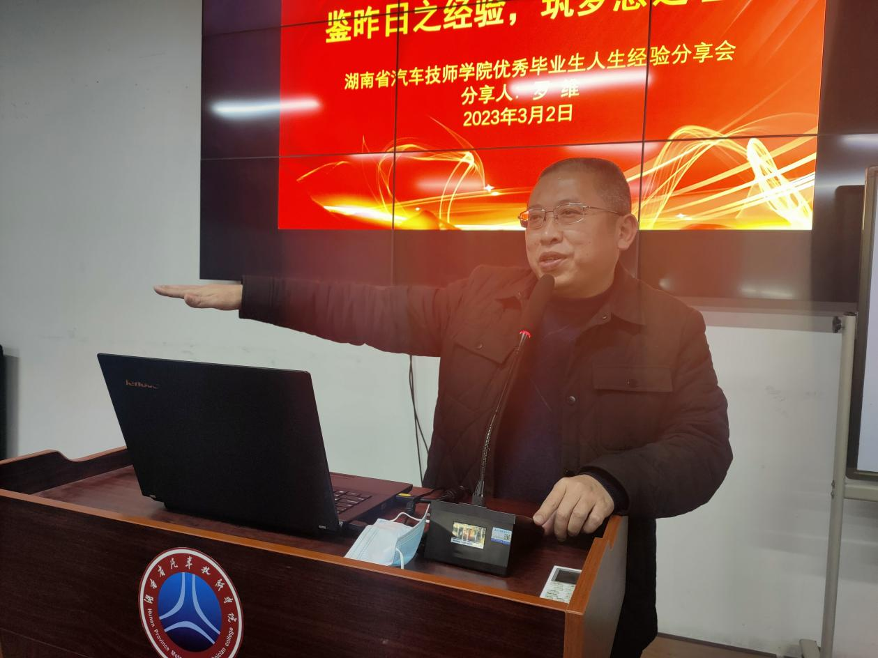 3月2日晚七点,湖南省汽车技师学院长沙分校举行优秀校友经验分享会,聆听学校01届优秀毕业生罗维分享他的成功经验。此次活动由分校副校长彭昌春牵头、学保部组织,自动化19-01班、自动化2003班和电子技术2101班三个班级学生及班主任参与。