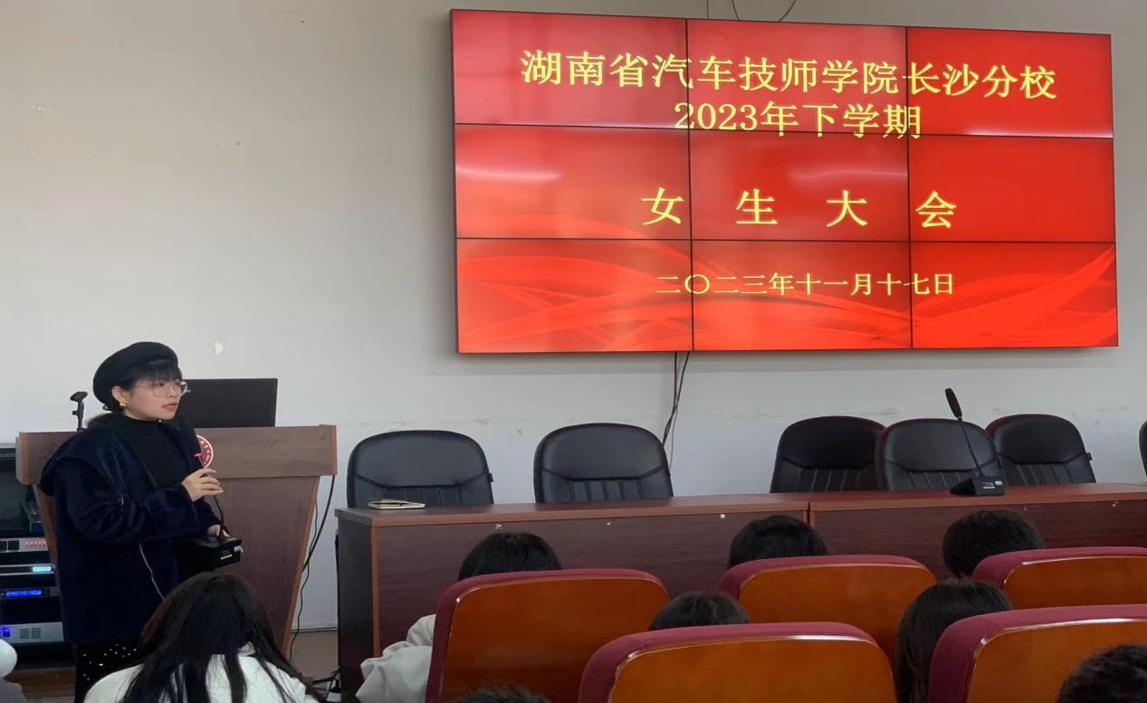 为了让女生了解更多青春期生理及心理知识,加强女生的安全意识和自我保护能力,提高自我保护意识,共同创建安全校园,11月17日下午,湖南省汽车技师学院长沙分校开展了女生健康安全教育大会。会议由学保部徐珂静老师主持,黎菁玉吉、徐珂静两位老师担任主讲教师。